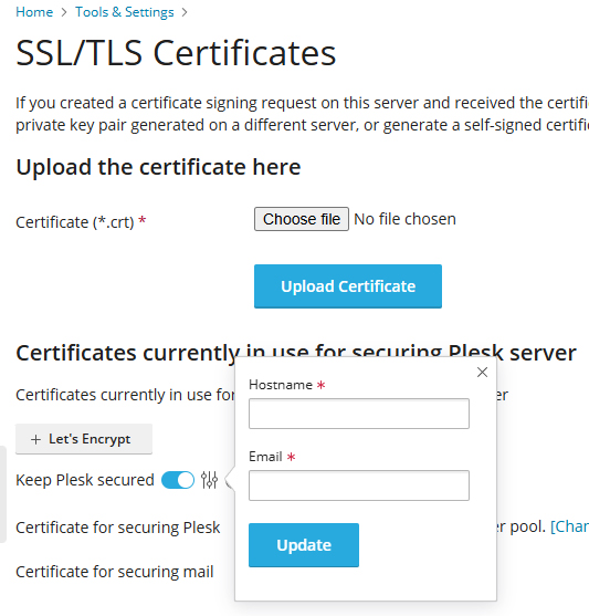 - Scroll down to Keep Plesk Secured